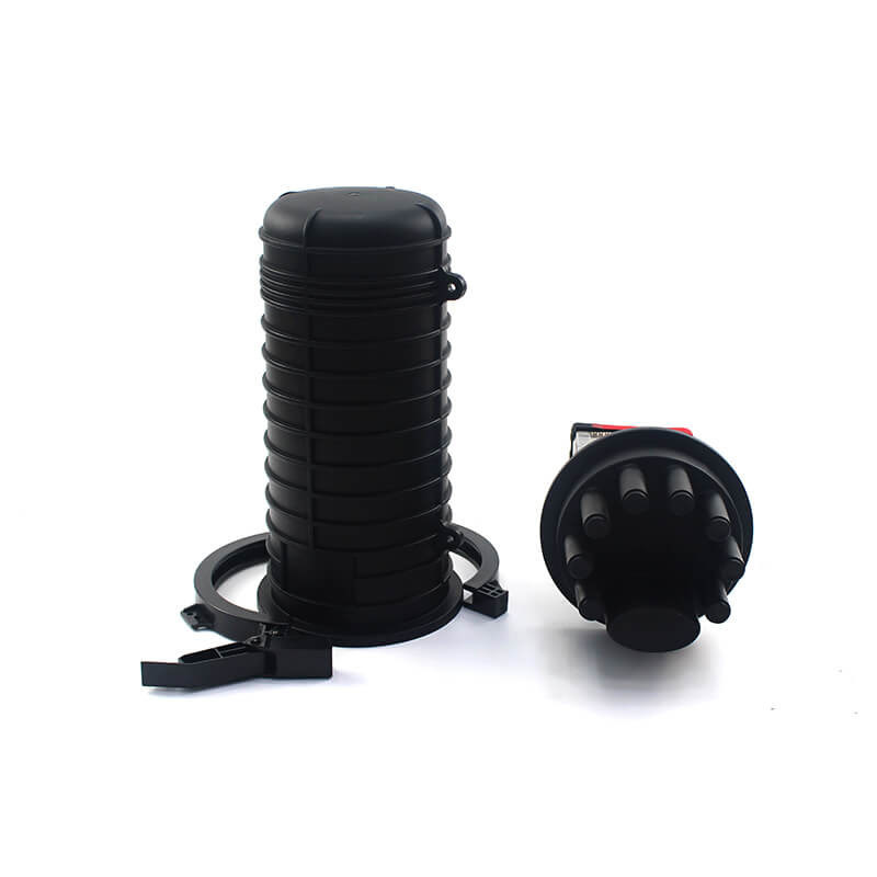 Optische glasvezelsplitsing/verbindingsdoos/verbindingsdoos wordt gebruikt om de splitskop van de glasvezelfusie tussen twee verschillende optische kabels te beschermen;een gereserveerd gedeelte van de glasvezel zal worden bewaard in de sluiting voor onderhoudsdoeleinden. geschikt voor F 7 - F 22 kabel in en uit, geschikt voor lucht-, wandmontage, paalmontage, verschillen in plaats.De kabeldichting is afgesloten met een warmte-krimpbare buis.