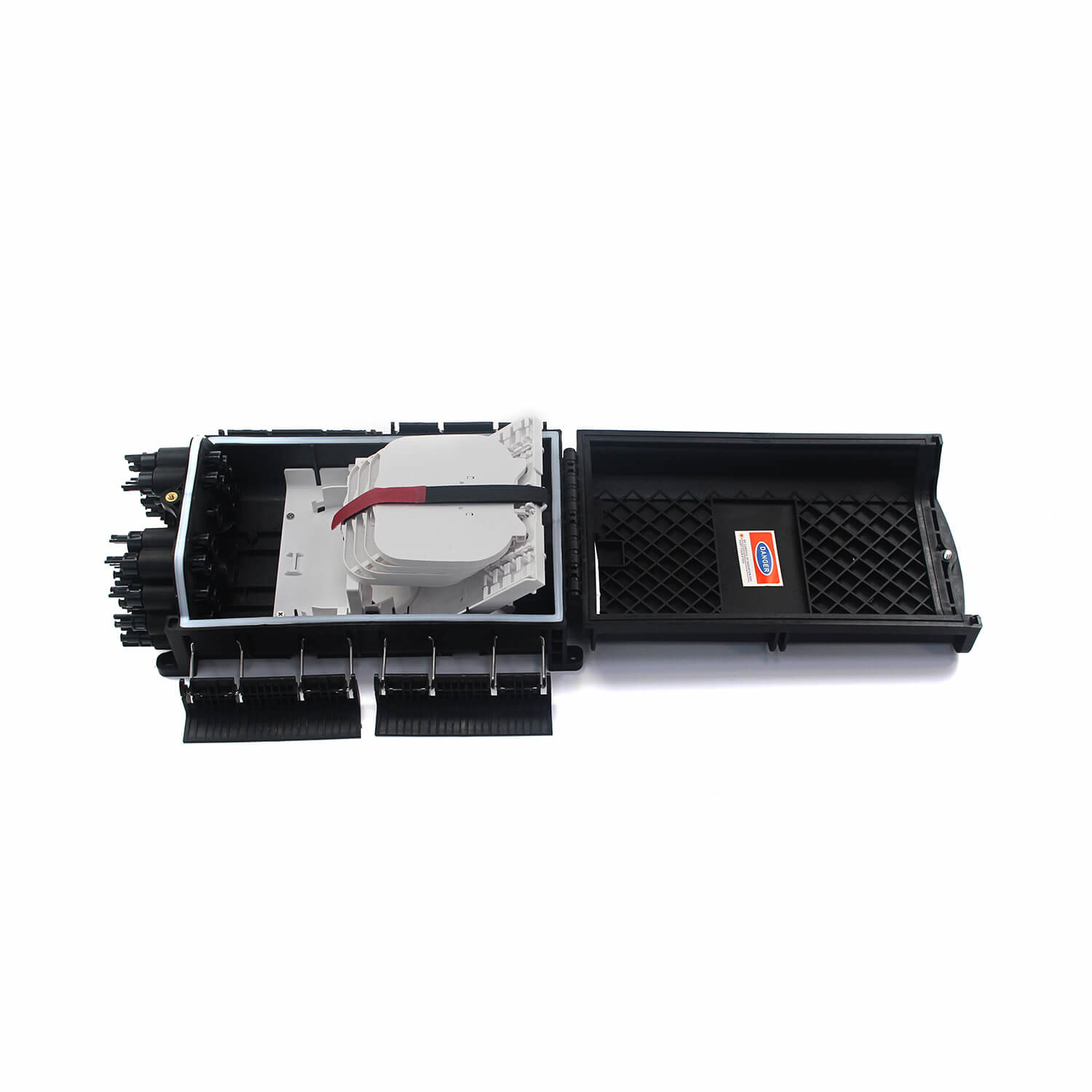 Optische vezel splice sluiting is in staat om tot 288 splicing punten als buiten sluiting te houden. waterdicht ontwerp met IP68 bescherming niveau. Integreerbaar met flap-up splice cassette.Het wordt gebruikt als splicing punt voor de voedingskabel om verbinding te maken met de distributiekabel in het FTTx backbone netwerk systeem Het combineert vezelsplitsing, opslag en kabelbeheer in één solide beschermde doos.