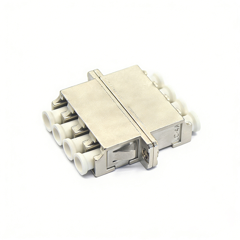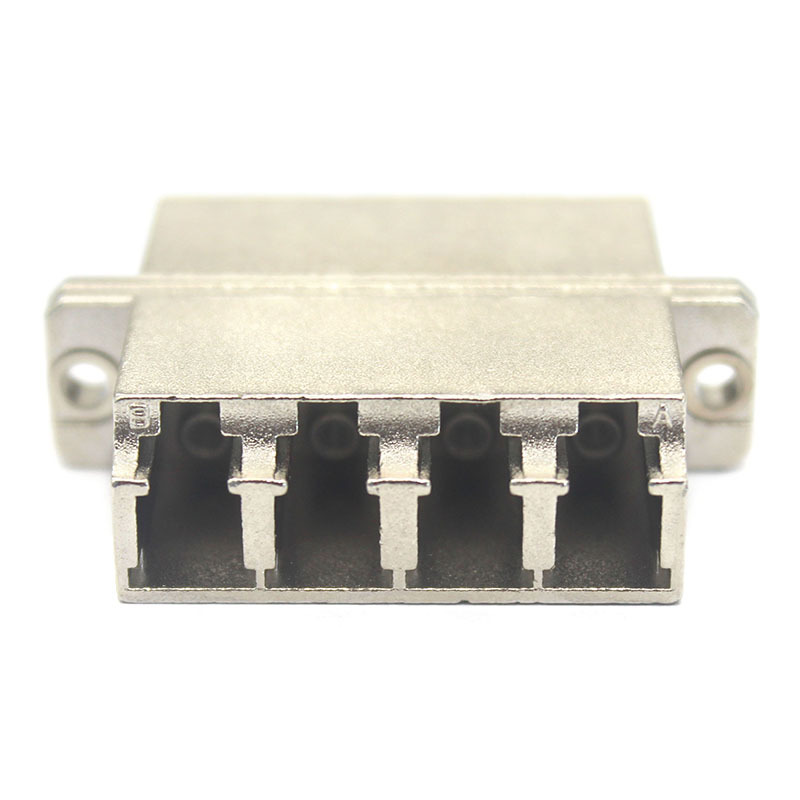 1.3 Quadruplex: De adapter accepteert vier aparte LC simplex connectoren (of twee duplex clips) gerangschikt in een enkele rij of een 2x2 vierkant blok.