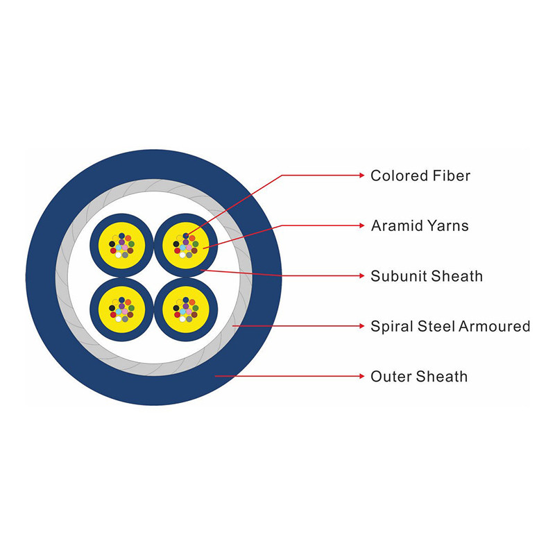 GJASFKV Indoor multi-core gewapende glasvezelkabel is de multi-streng aramidvezel versterkt met een multi-core bundel mini ф250μm optische vezeloppervlak.Een PVC- of LSZH-inwendige jas wordt als een subeenheid op het gestreepte oppervlak geëxtrudeerdIn de buitenste laag wordt een laag staaldraadverzorging toegepast met een kleine hoeveelheid aramide.met een oppervlakte van meer dan 10 mm,.