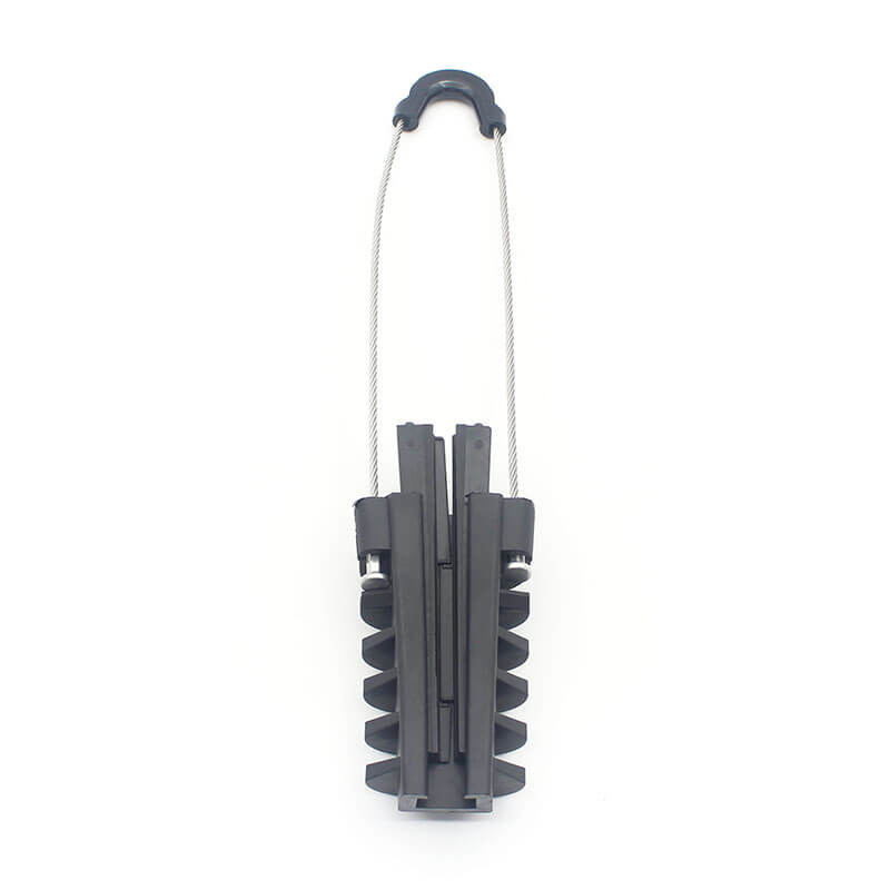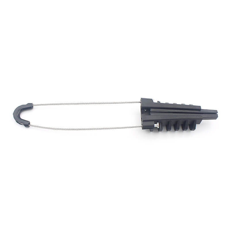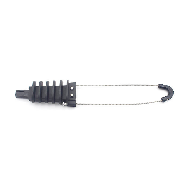 De ankerklemmen zijn zelfinstelbaar, terwijl de installatie de klem stroomopwaarts naar de paal trekt, met behulp van speciale installatiehulpmiddelen voor optische vezellijnen, zoals het trekken van sokken, het strengen van blokken,hefboom tillen om de kabel te trekkenDe maat die nodig is om de afstand van de beugel tot de ankerklem te meten en de spanning van de kabel te verliezen, laat de klemmen de kabel in de binnenkant geleidelijk verankeren.