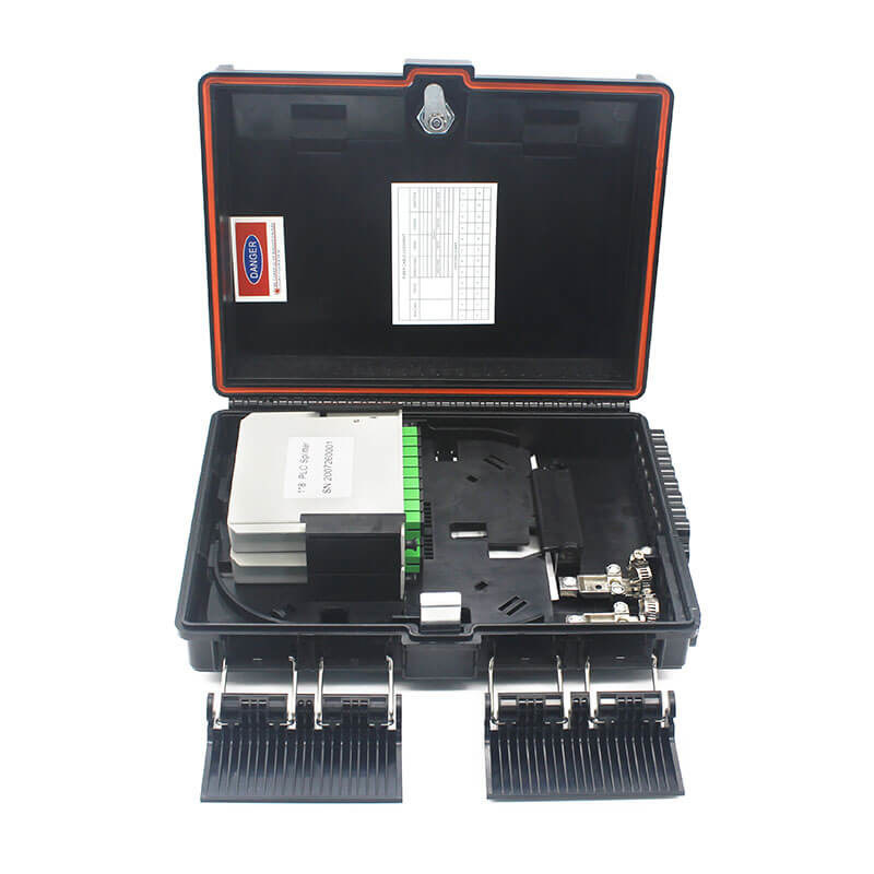 Deze glasvezel distributie doos beëindigt tot 2 glasvezel kabels, biedt ruimte voor splitters en tot 16 fusie, kent 16 SC adapters en werkt onder buitenomgevingen.Het is een uitstekende kosteneffectieve oplossingsleverancier in de FTTx-netwerken.