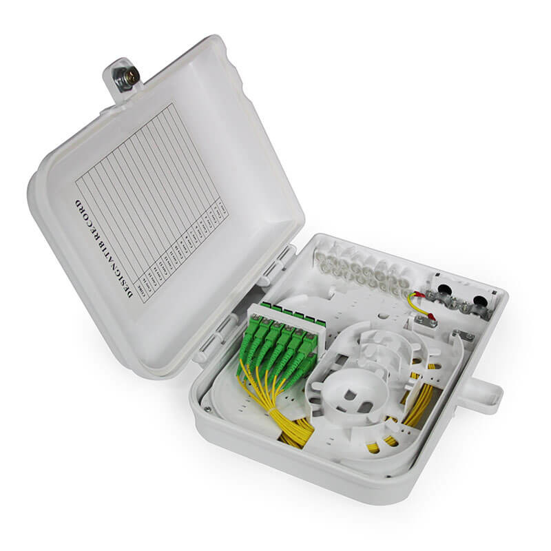 FTTH-model/C-type terminalbox is licht en compact, met name geschikt voor de beschermende aansluiting van glasvezelkabels en pigtails in FTTH.Veel gebruikt in de eindterminatie van woongebouwen en villa's, te bevestigen en te splitsen met pigtails; kan op de muur worden geïnstalleerd; kan verschillende optische verbindingsstijlen aanpassen; optische vezels kunnen effectief worden beheerd. beschikbaar voor 1 * 2 / 1 * 4 / 1 * 6 PLC Splitter.