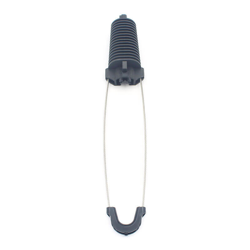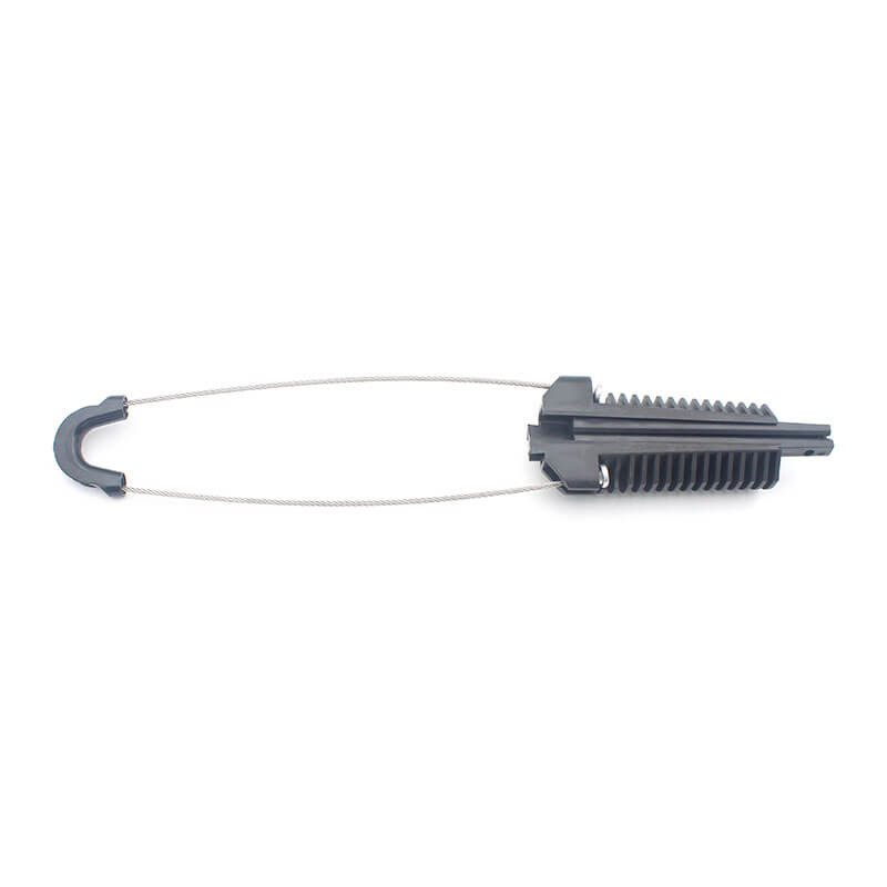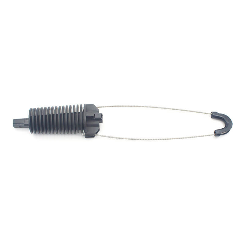 Deze verankeringsklemmen bestaan uit een geopend kegelvormig lichaam, een paar plastic wiggen en een flexibele beugel met een isolatievinger.De beugel kan worden vergrendeld op de klem lichaam eenmaal door de paal steuntje en opnieuw geopend met de hand op elk moment wanneer de klem is niet onder volle belastingAlle onderdelen zijn aan elkaar bevestigd om verlies tijdens de installatie te voorkomen.