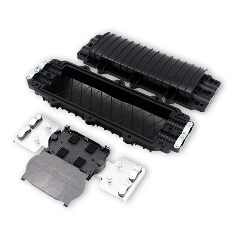 Fiber Optic Inline Lasverbinding Behuizing is een beschermende behuizing ontworpen om glasvezelverbindingen te huisvesten en te beschermen in buiten- of ondergrondse installaties. Het biedt een afgesloten omgeving om gesplitste vezels te beschermen tegen vocht, stof, mechanische belasting en andere omgevingsfactoren.