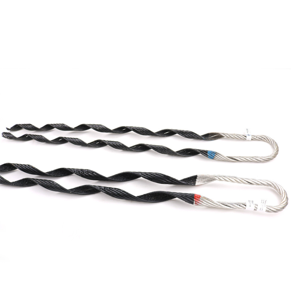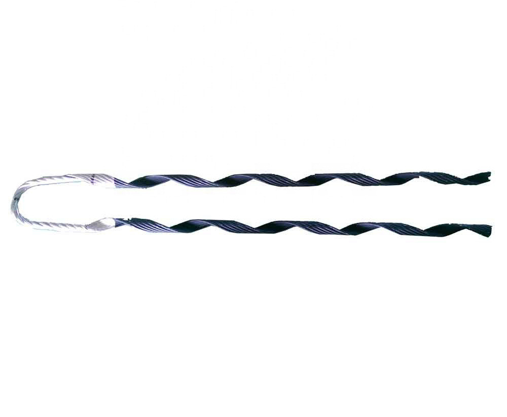 "Preformed Guy Grip" (of "Preformed Dead-End Grip"), De materialen van de doodlopende klem verschillen voor de overeenkomstige geleiders, in het algemeen een hoogdraaibare aluminiumlegering voor aluminiumoeliegeleiders;met aluminium geplatte staal voor ACSR. Doodlopende klemmen worden gebruikt om geleiders aan het einde of in het midden van de bovenleiding te bevestigen.de veerspanning ontstaat en de wrijving is