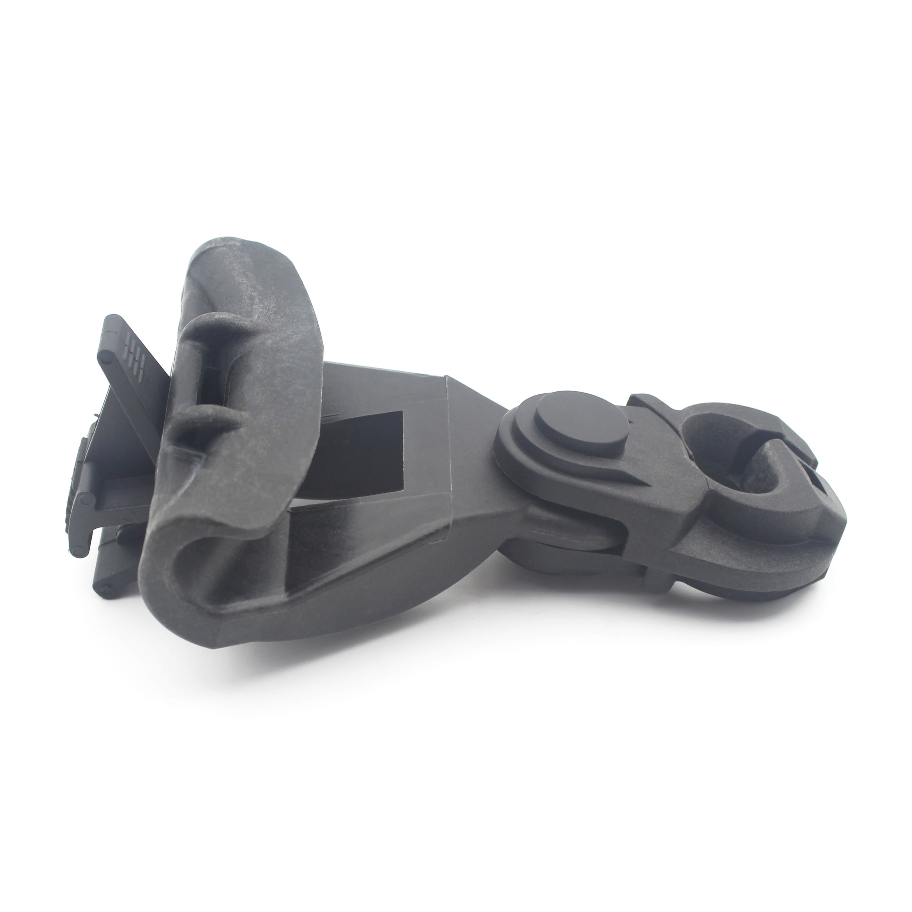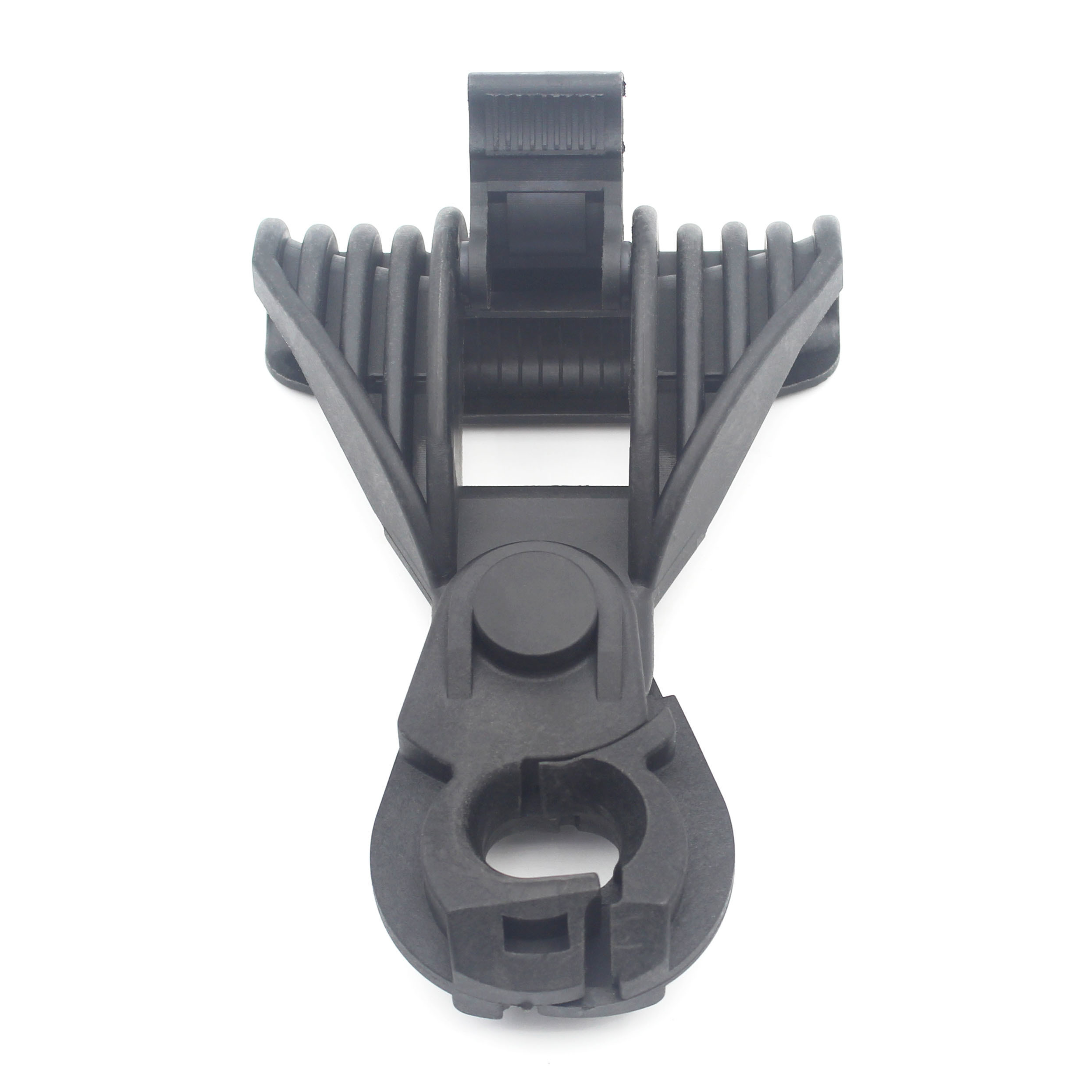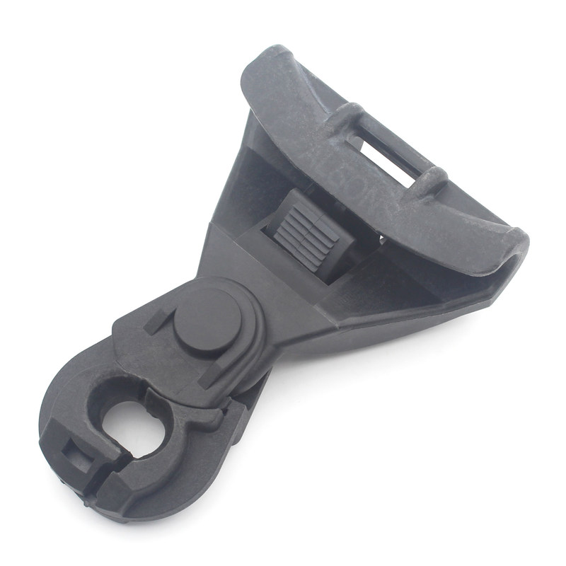 De carrosserie van de ophangklem wordt geleverd met het trekstuk dat bestaat uit een schroef en een klem, waardoor de boodschapperkabel in de ophanggroef kan worden bevestigd (vergrendeld).de bewegende schakelDe krabbel en de klem zijn gemaakt van versterkt thermoplastisch materiaal, een U-V-bestand materiaal met mechanische en klimaateigenschappen.De ophangklem is flexibel in de verticale richting vanwege de bewegende schakel en diende ook als een zwakke schakel in de ophanging van de luchtkabel.