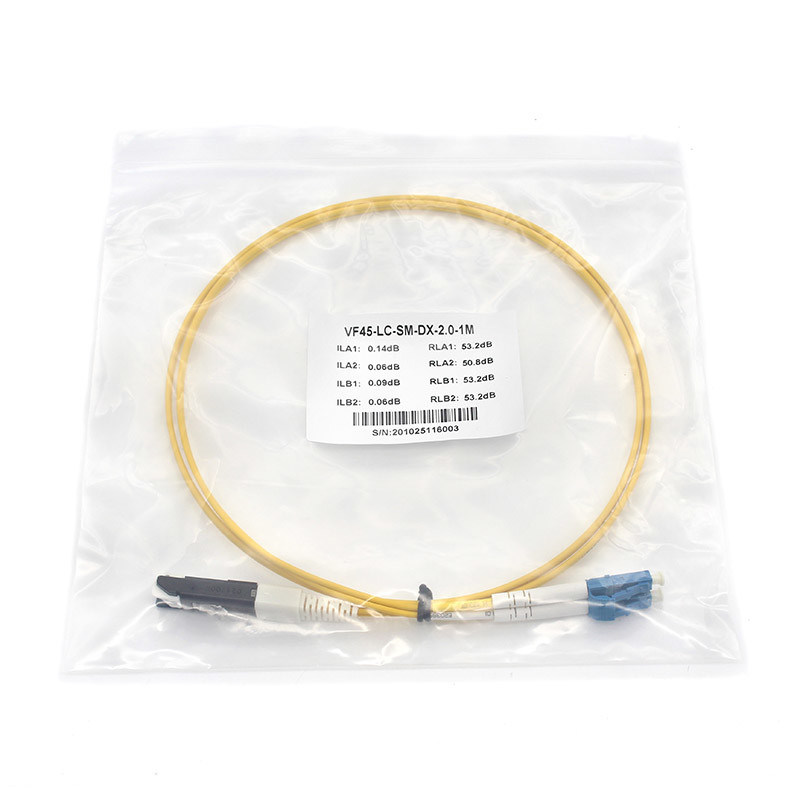 Single Mode Fiber Optic Patch Cord met PVC Duplex LC UPC tot VF45 voor oplossingen voor breedbandvezels