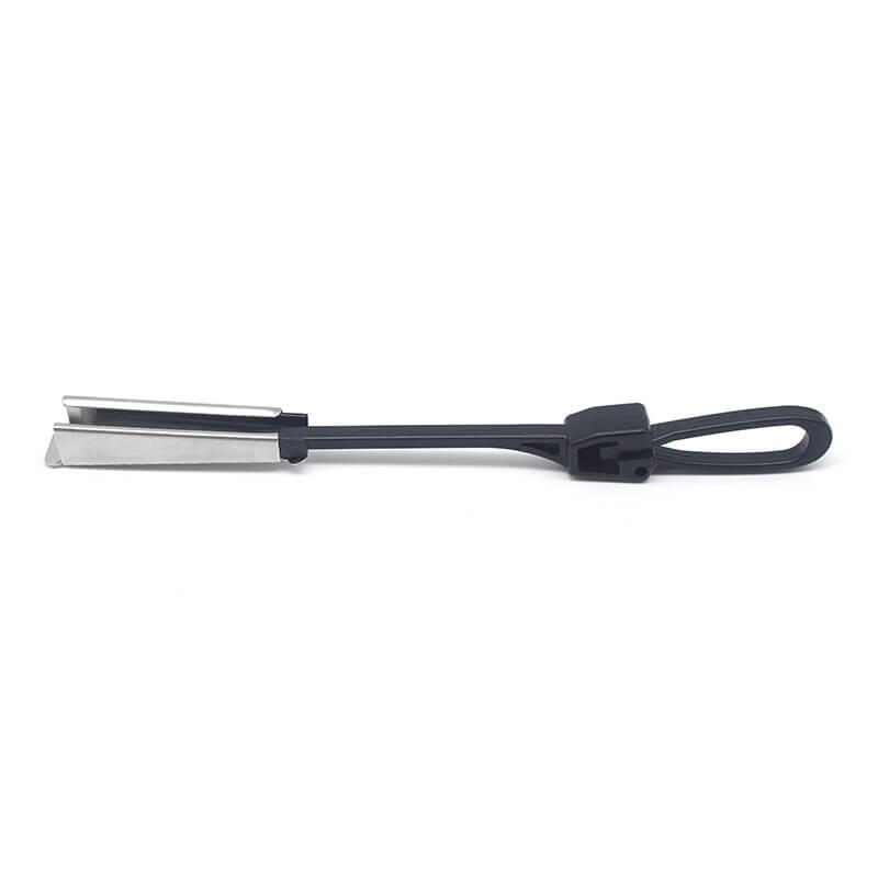 Deze klem is ontworpen voor het ophangen van een vlakke glasvezelkabel van 4x8 mm.die niet meer dan 70 meter huisinstallatie met luchtvezel-optische kabel hebbenHet is voorzien van een geperforeerde shim, die de spanningsbelasting op de glasvezel druppel verhoogt.die de duurzaamheid van het product vergrotenDeze klem is voorzien van een plastic draadbeugel, waardoor de installatie op gesloten haakbeugels, andere dropdraadklemmen en hardware mogelijk is.