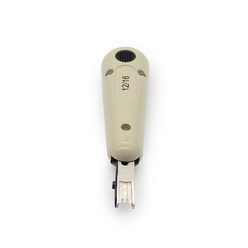 BIX Punch Down Tool. Deze tool is ontworpen om kabels, pigtails en jumper draden op alle GigaBIX, BIX en UMOXS cross-connect systeem connectoren te beëindigen.De voorziening wordt geactiveerd door een spring die 22-26 AWG plastic geïsoleerde vaste koperen geleiders afsluit.Een knop op het handvat regelt het gereedschap alleen voor het plaatsen van de leiders of voor het plaatsen en snijden van de leiders.