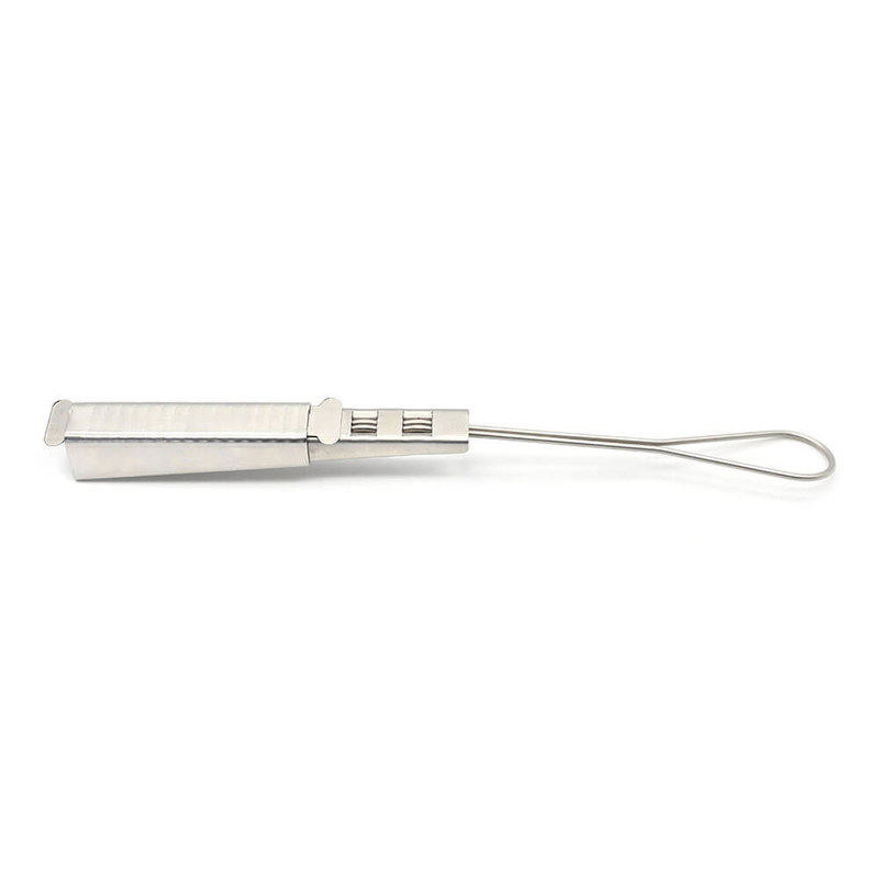 De draadklem van roestvrij staal is een soort draadklem die veel wordt gebruikt om telefoondraad bij spanklemmen, aandrijfshaken en verschillende druppel bevestigingen te ondersteunen.Clamps van roestvrij staal bestaan uit drie delen: een schelp, een scherm en een wig voorzien van een beugeldraad.Het heeft verschillende voordelen, zoals: als goed corrosiebestendig, duurzaam en economisch. Dit product wordt sterk aanbevolen omdat het een uitstekende corrosievermogen.