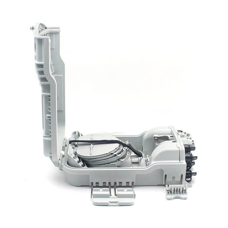 1.2 Design met een hoge capaciteit en gemakkelijke toegang: ondersteunt maximaal 96 vezels met vier splitsingsbakken, elk met maximaal 24 splitsingen;flip-up trays en een toegangshoek van 180° zorgen voor een gemakkelijke bediening en onderhoud.